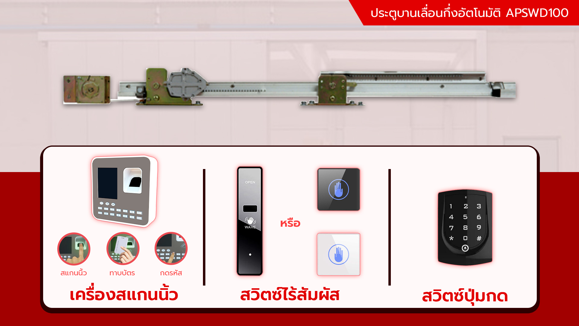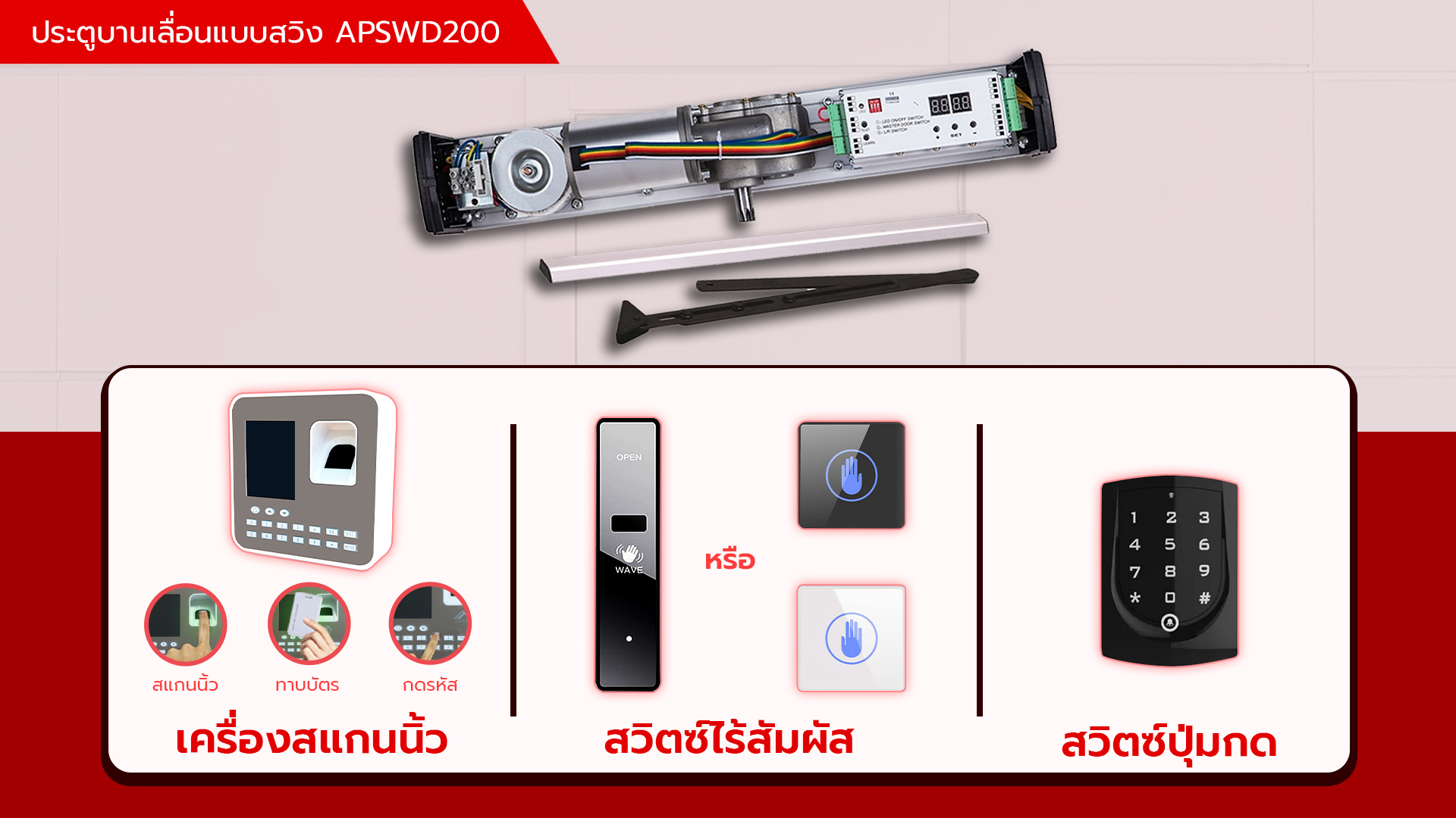 ใช้งานร่วมกับระบบประตูบานเลื่อนอัตโนมัติ 2 ฟังก์ชั่น ใน 1 เครื่อง เพิ่มระดับของความปลอดภัย