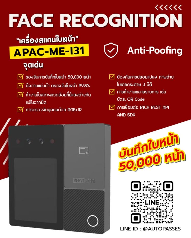 เครื่องสแกนใบหน้าสามารถสั่งงานเปิด-ปิด ประตูบานเลื่อนอัตโนมัติ ลดการสัมผัสและเพิ่มความปลอดภัยได้เป็นอย่างดี