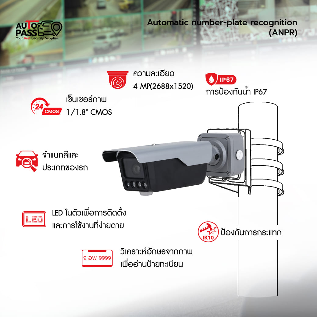 สะดวกสบายในการใช้งานเพื่อใช้ในการบันทึกข้อมูลการเข้าออกของรถ สามารถจับภาพได้รวดเร็ว จับภาพได้ชัดเจนทั้งกลางวัน